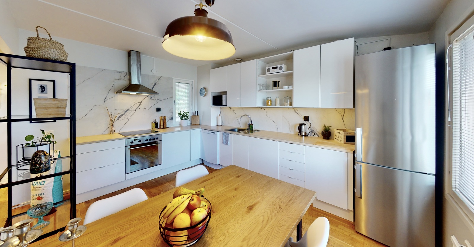 Asunto on pintaremontoitu vuonna 2021, ja kodinkoneita on uusittu vuosina 2018–2019. Keittiössä on ikkunat kahteen ilmansuuntaan, mikä tekee tilasta erityisen valoisan. Keittiöön mahtuu hyvin myös suuri ruokapöytä.