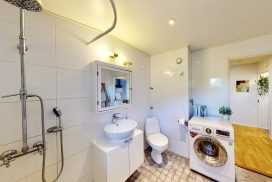 • Varusteet: pesukoneliitäntä, lattialämmitys, wc-istuin, suihku, kylpyhuonekaapisto