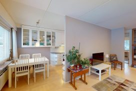 | Toimeksiantajan aikana huoneistoon tehdyt toimenpiteet sekä niiden ajankohta | Keittiö remontoitu, parketti hiottu (k, oh, et) pesuhuone remontoitu ja saunan lattia 2014-2015, pintaremonttia vuosien varrella. |