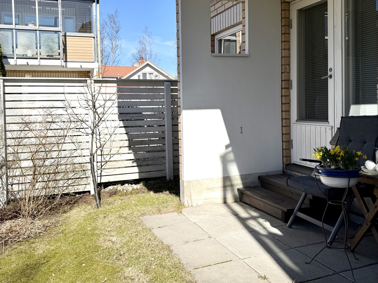 Valoisa ensimmäisen kerroksen pihallinen neliö tarjoaa toimivaa arkea ja kodikasta asumista. Taloyhtiön suojaisa sisäpiha luo rauhallisen ja turvallisen ympäristön niin lasten leikeille kuin kesäpäivistä nauttimiseen.